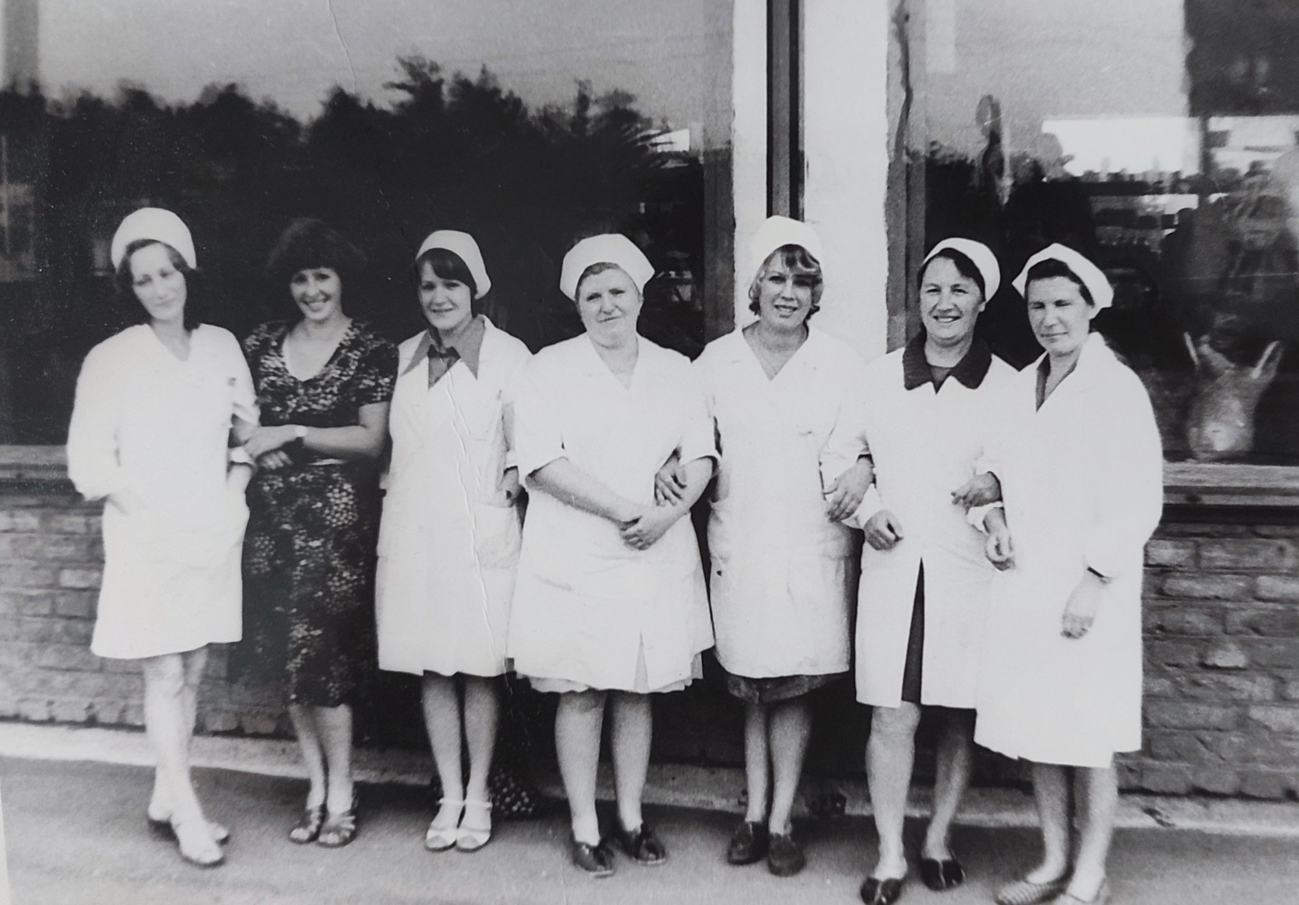 На фото конца 1970-х годов коллектив аптеки №403 на Парковской в Орехово-Зуеве (напротив поликлиники). Когда-то аптека занимала отдельное здание с большими стеклянными окнами. Она до сих пор там работает, но теперь делит помещение с другими магазинами.