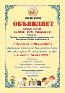 Лобненская детская школа искусств объявляет прием детей на 2023-2024 учебный год.