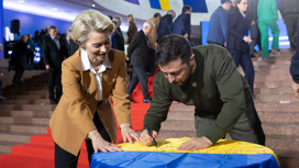 Саммит "Украина – ЕС", назначенный на завтра, нетерпеливо открыли уже сегодня. На украинском флаге расписывались, с европейским фотографировались, а президент Зеленский вел себя так, будто страна уже вступила в Евросоюз.