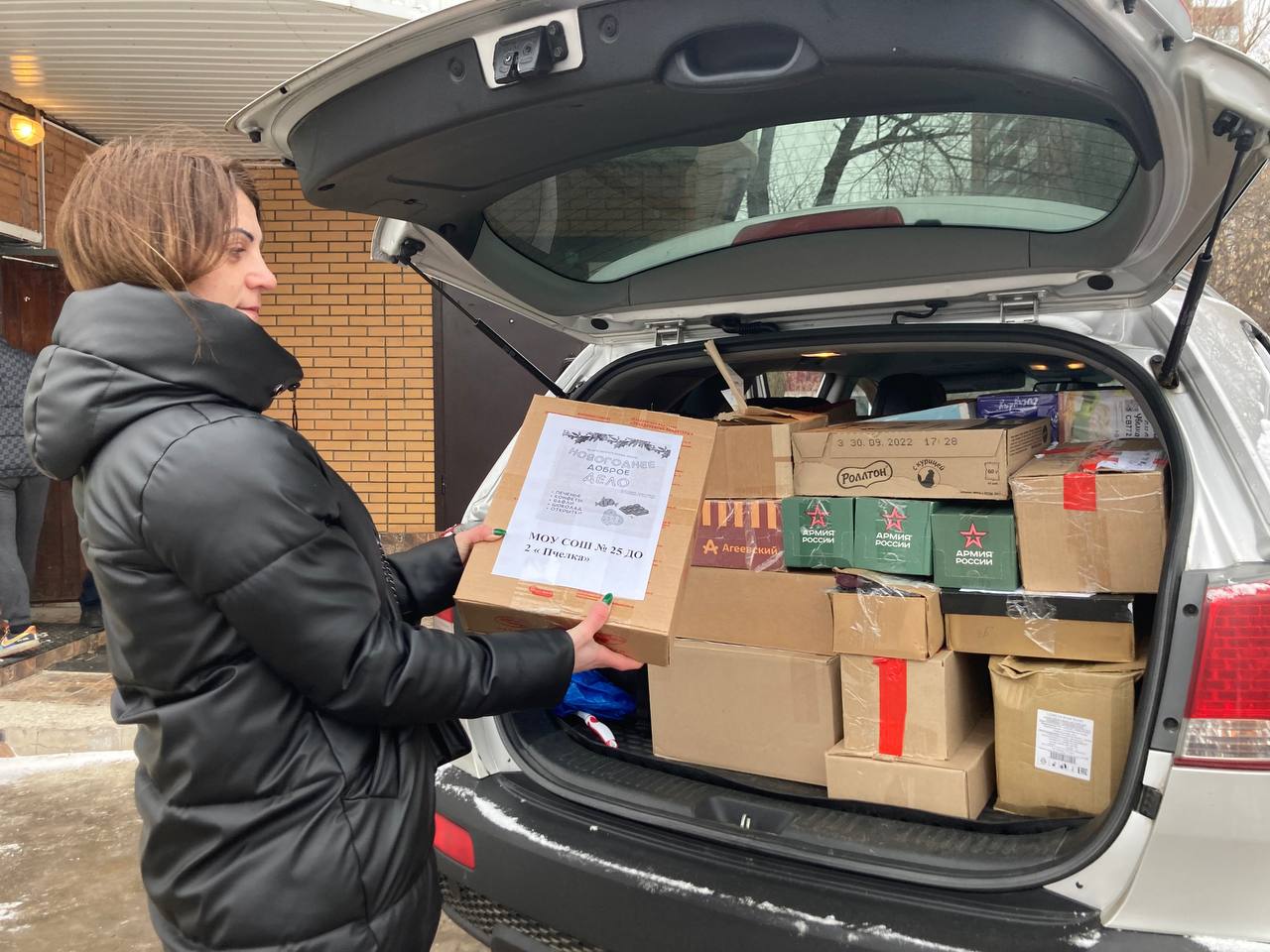 Собрали нашим военнослужащим продукты питания, бытовые инструменты, средства личной гигиены по просьбе Елены. Её сын сейчас отстаивает интересы Родины в зоне СВО. Также к нам обратилась супруга одного из мобилизованных – Светлана. Для её мужа, помимо продуктов, передали баллоны с газом и пленку.