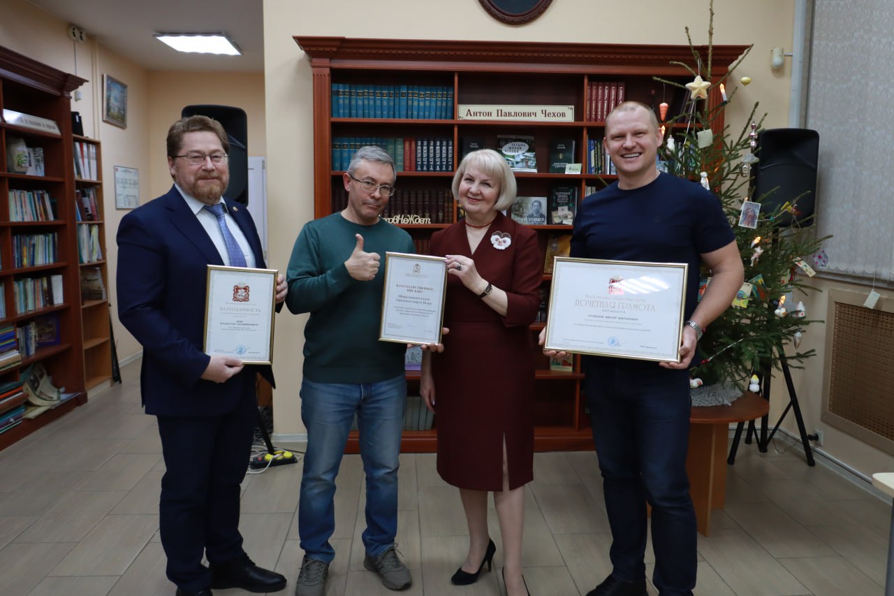 Заместителю председателя ОП г.о. Истра Виктору Викторовичу Кузнецову и председателю комиссии по миграционной политике, межнациональным и межконфессионным отношениям Владиславу Владимировичу Вовку вручены Почетная грамота и Благодарность от Московской областной Думы – за добросовестный труд и высокий профессионализм в работе. Их бескорыстная деятельность на благо жителей городского округа Истра ведется уже много лет, и благодаря ей улучшились многие общественные процессы в нашем округе. Это и благоустройство территорий, и помощь военнослужащим в зоне СВО и их семьям, и помощь малообеспеченным жителям нашего округа.