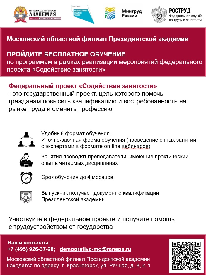 Лыткаринцам предлагают пройти бесплатное обучение по программам в рамках реализации мероприятий федерального проекта «Содействие занятости»