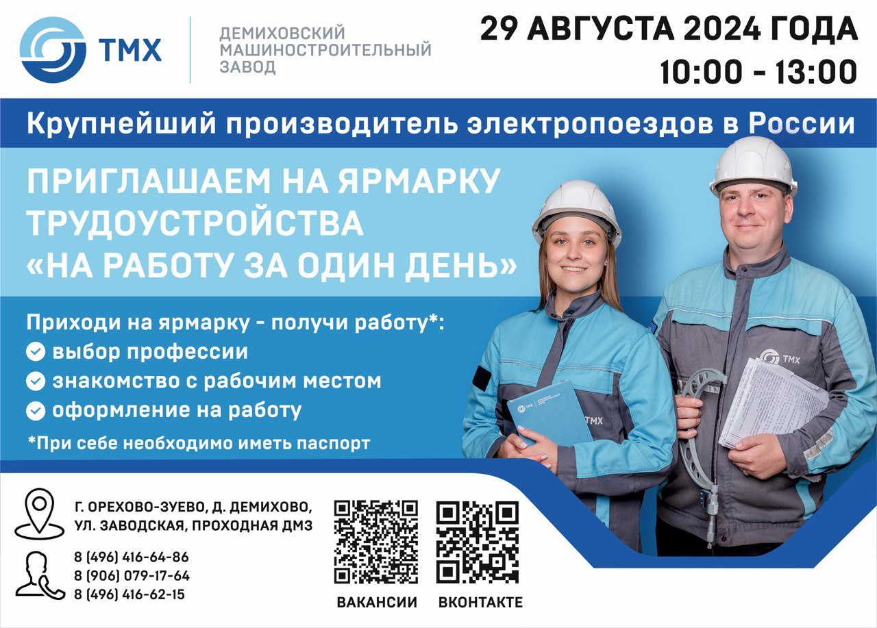 Демиховский машиностроительный завод приглашает всех желающих на ярмарку трудоустройства, которая пройдет в ближайшие дни. Это отличная возможность для тех, кто ищет работу, чтобы познакомиться с потенциальными работодателями, узнать больше о вакансиях и подать заявления прямо на месте.