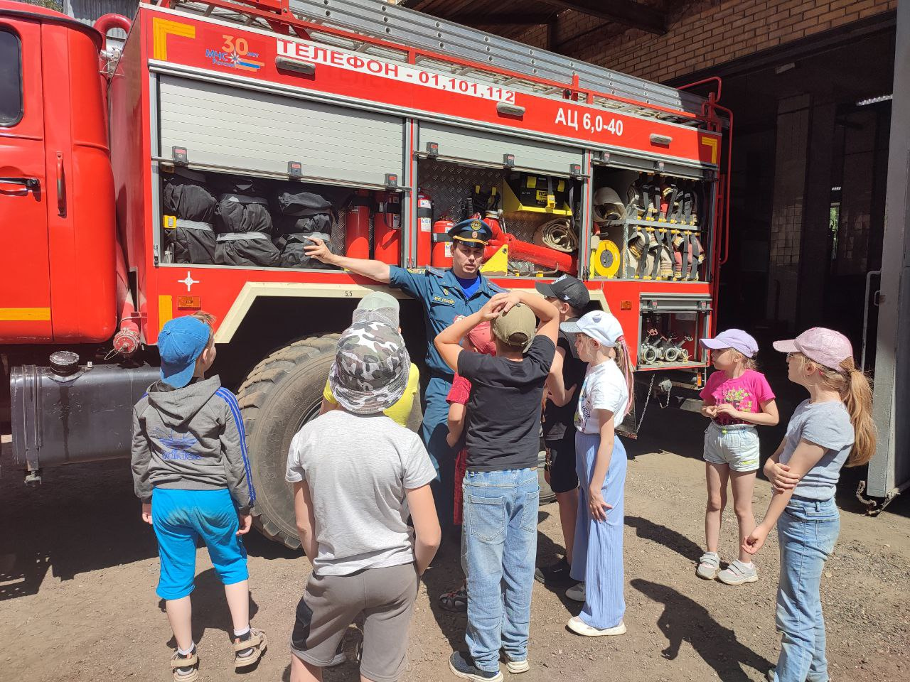 Пожарные округа провели экскурсию для детей, отдыхающих в школьном лагере
