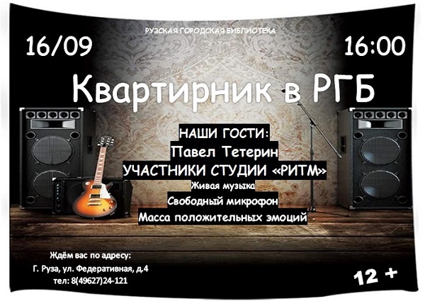 В Рузской городской библиотеке 16 сентября состоится уютный рок-концерт в формате квартирника. Начало в 16 часов.
