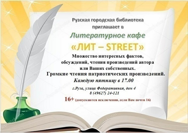 Рузская городская библиотека приглашает всех желающих 27 октября в 18 часов в литературное кафе «Лит-Street».