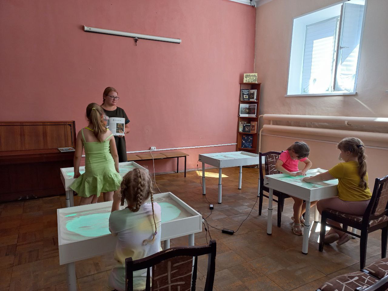 Библиотекарь ознакомила ребят Рузского городского округа с удивительным, ярким и разнообразным миром животных, задавала вопросы. На песочных столах юные художники нарисовали своих домашних питомцев и рассказали об их поведении.
