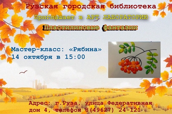 В арт-лаборатории «Пластилиновые фантазии» Рузской городской библиотеки 14 октября в 15 часов состоится мастер-класс «Рябина».