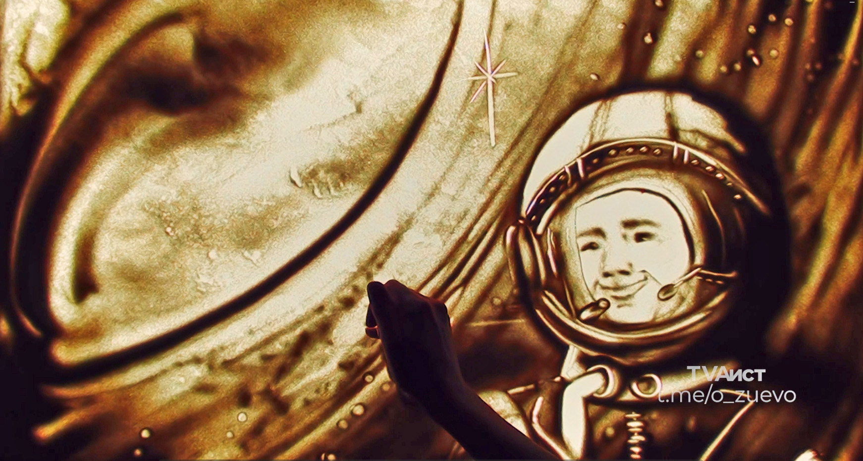 Его слова, символ новой космической эры, стали историей. Именно так её прочувствовала жительница города Куровское Мария Шорец и создала песочную анимацию.