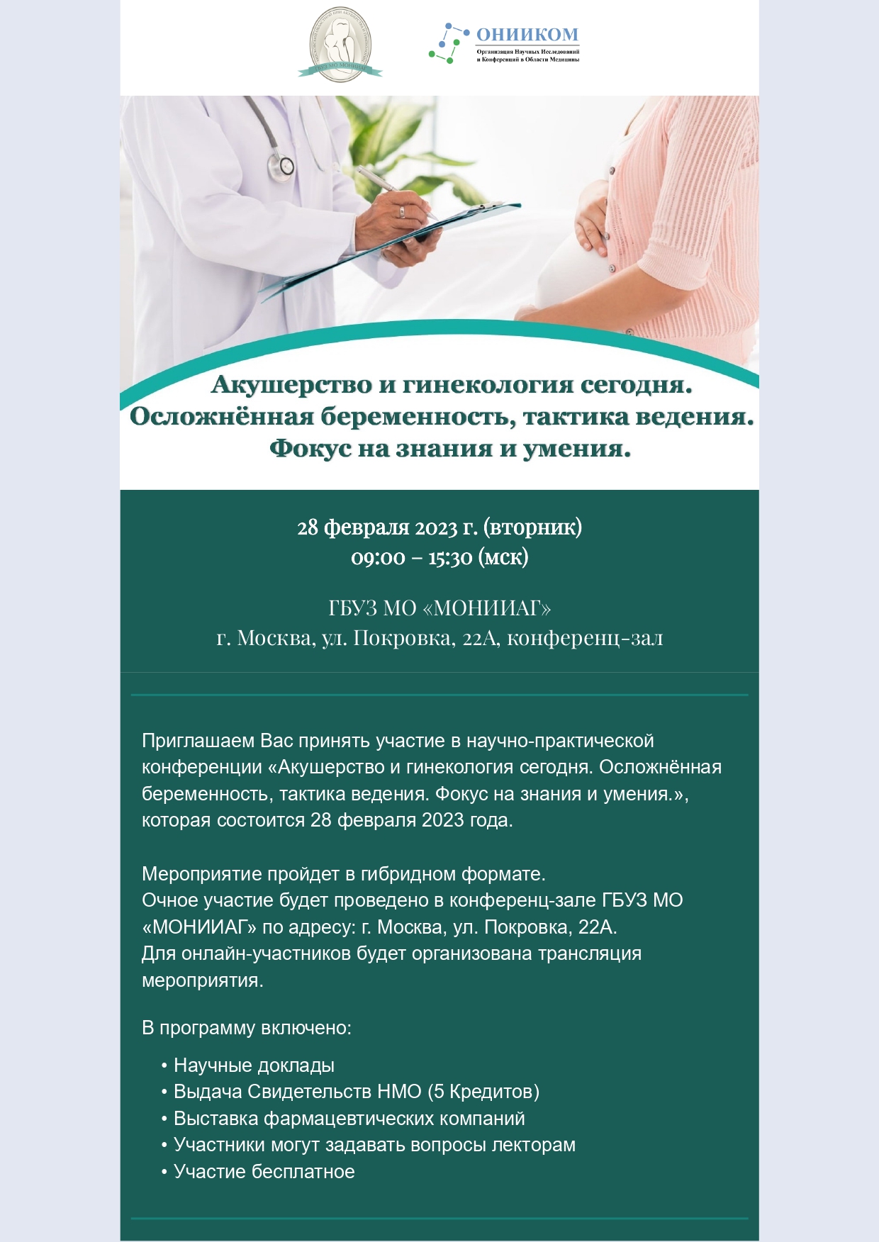 28 февраля 2023 года пройдет конференция «Акушерство и гинекология сегодня. Осложнённая беременность, тактика ведения. Фокус на знания и умения»