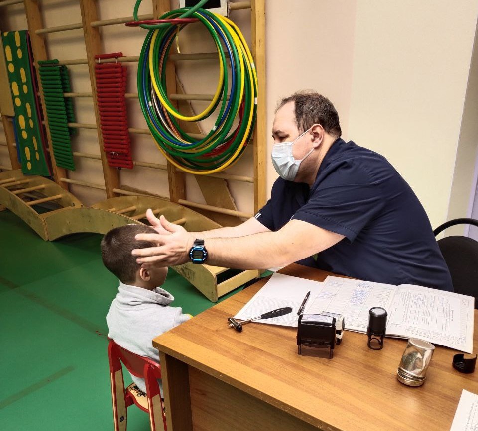 В результате осмотров были выявлены такие заболевания, как дизартрия, блефарит, астигматизм, недостаточность конвергенции, пупочная грыжа, фимоз.