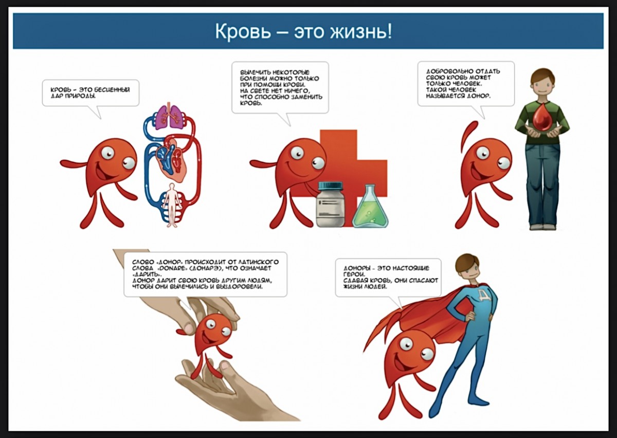 Некоторые люди, совершая такие поступки, помогают тысячам людей вокруг. Это доноры крови. Герои, которые спасают жизни людей!